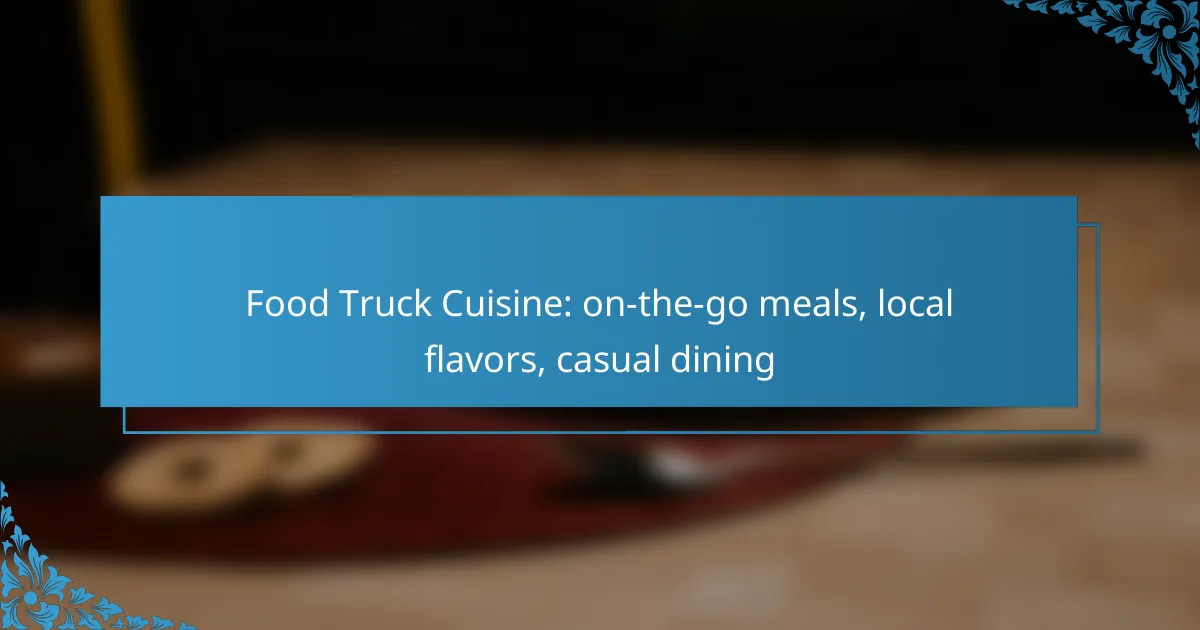 Food trucks have revolutionized casual dining by offering a diverse selection of on-the-go meals that highlight local flavors and culinary creativity. From gourmet tacos to innovative fusion dishes, these mobile kitchens cater to a variety of tastes and dietary preferences, making them a popular choice for food lovers everywhere. Whether you’re at a bustling city event or simply craving a quick bite, food trucks provide a convenient and delicious dining experience.
