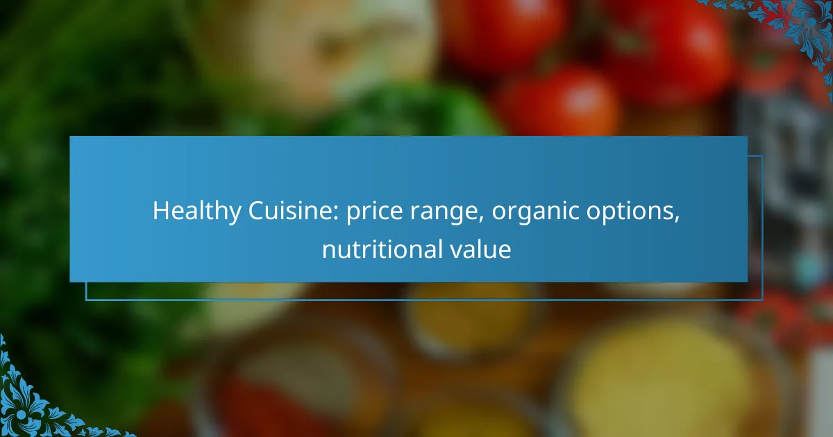 Healthy cuisine offers a diverse range of options that cater to various dietary preferences and budgets, typically costing between $10 to $30 per meal in Los Angeles. Many establishments focus on organic ingredients, enhancing both the nutritional value and sustainability of the dishes. By evaluating the ingredients and portion sizes, diners can make informed choices that align with their health goals.