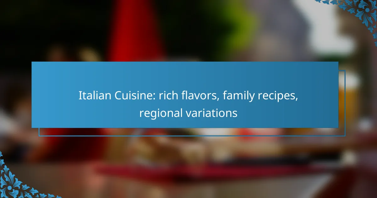 Italian regional cuisines showcase a rich tapestry of flavors and traditions, varying significantly from one area to another. Each region emphasizes local ingredients and historical influences, resulting in distinct culinary identities.