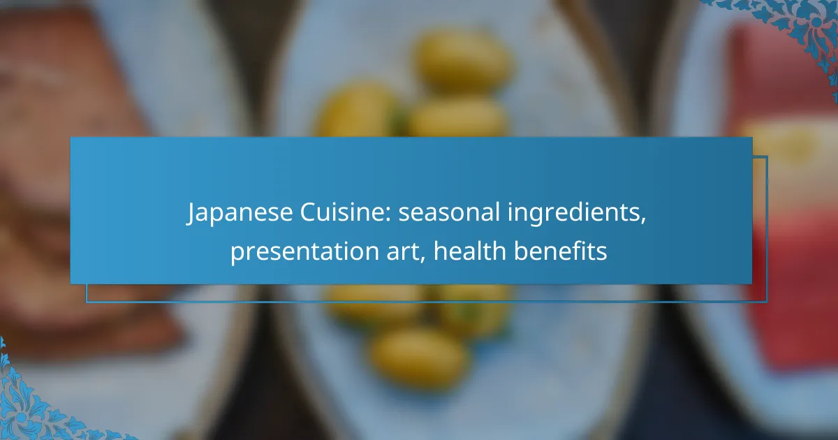Japanese cuisine is a harmonious blend of seasonal ingredients, artful presentation, and health benefits. By utilizing fresh, locally-sourced produce, each dish reflects the changing seasons and offers unique flavors and nutritional advantages. The meticulous arrangement of food not only showcases culinary skill but also enhances the overall dining experience, while the focus on balanced nutrition promotes well-being and longevity.