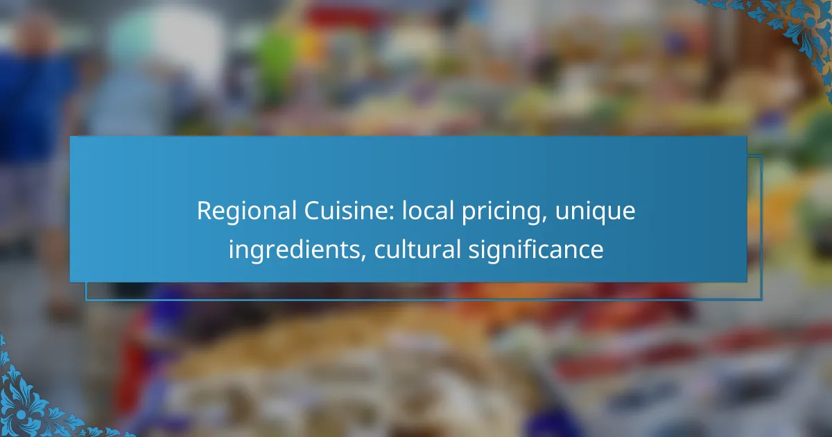 Regional cuisine offers a rich tapestry of flavors and traditions, deeply rooted in local ingredients and cultural practices. By exploring unique ingredients and their significance, diners can gain insight into the culinary identity of a region, while understanding local pricing trends helps to navigate the diverse culinary landscape. This exploration not only satisfies the palate but also fosters a connection to the community and its history.